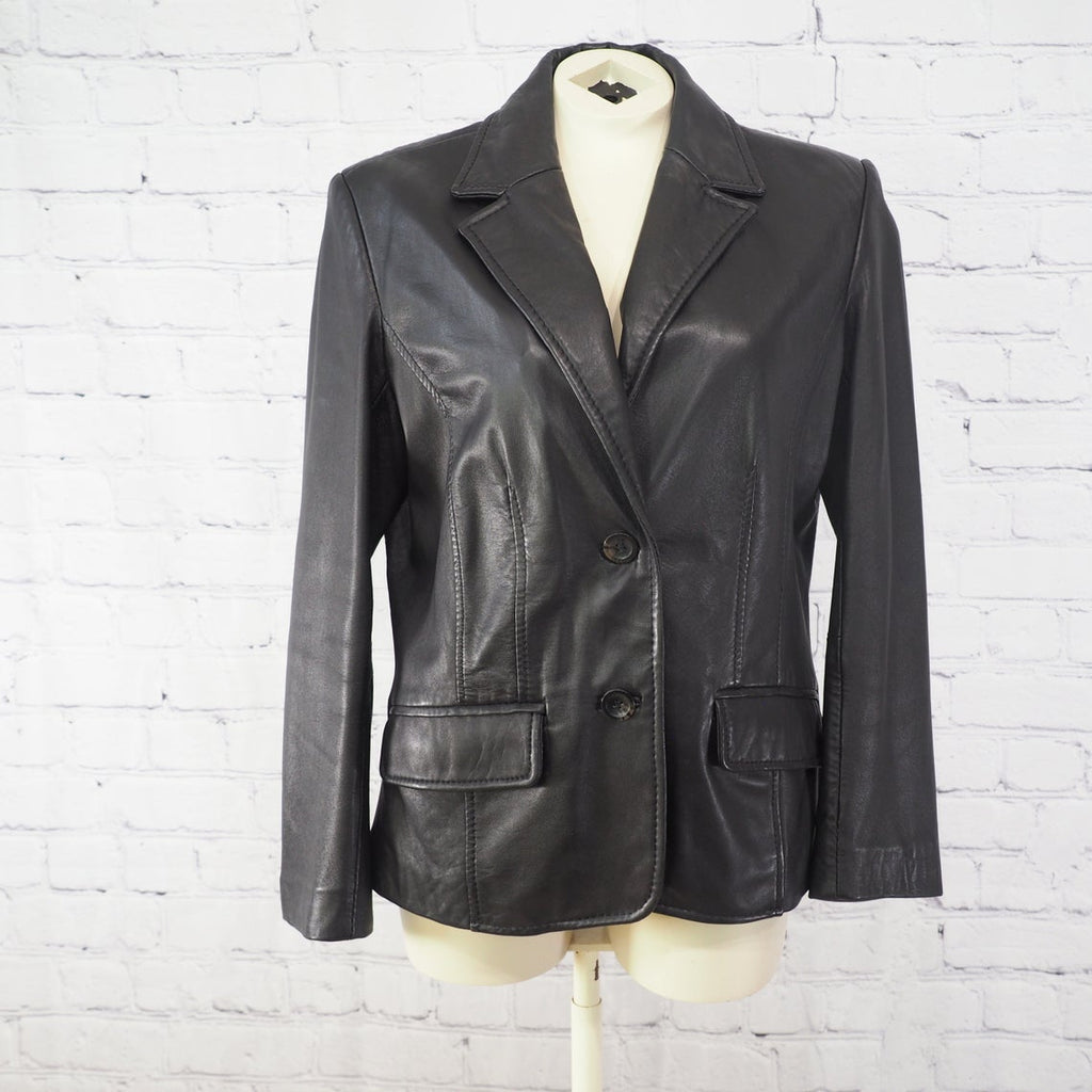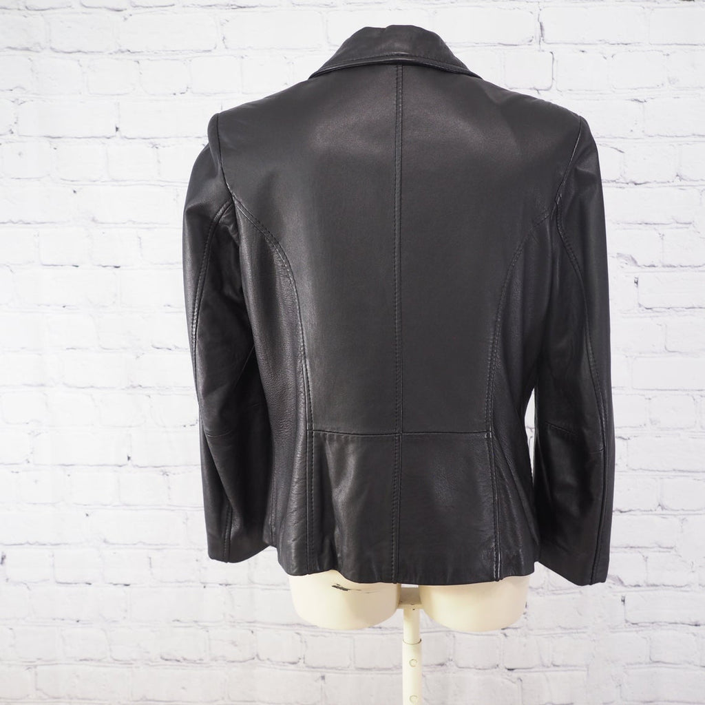 ✨Cool 90s Black Leather JacketCute cropped fitGenuine Leather and Fully LinedGood Vintage Condition✨Approximate Size Women's Small to a MediumChest: 38"Waist: 36"Sleeve: 23"Length: 24"✨Model size for referenceSize 8 in modern sizing5 foot 8 Inches TallCurvy Build